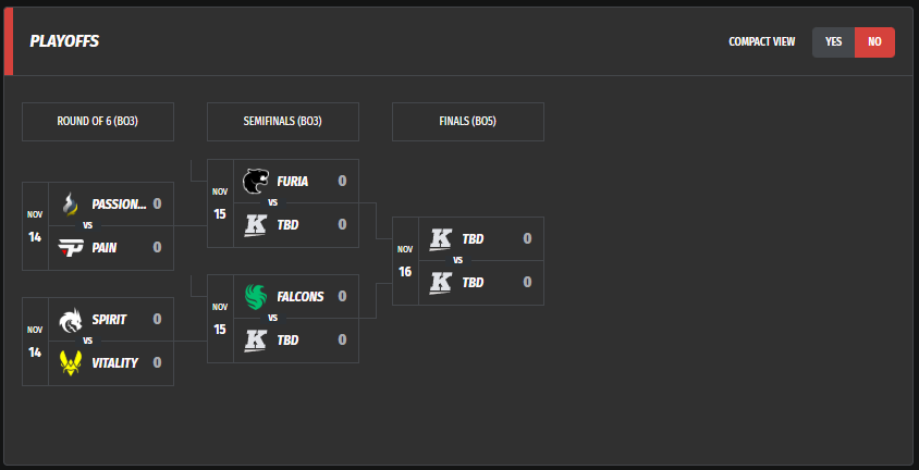 Los ganadores de estos encuentros se enfrentarán a los equipos que ocuparon el primer lugar en los grupos, — Falcons y FURIA respectivamente.