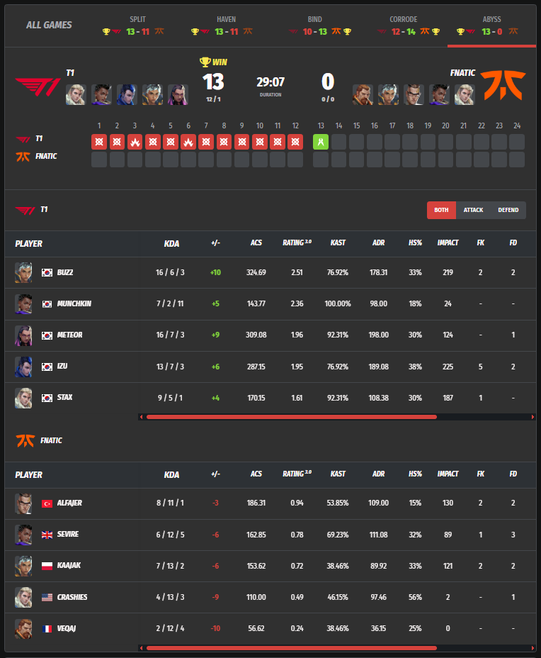 Todo se decidió en el quinto y decisivo mapa Abyss. Aquí, T1 preparó una verdadera sorpresa táctica, entrando al mapa con una selección de personajes inusual, que incluía tres duelistas. Este movimiento audaz desarmó completamente al oponente. Los coreanos jugaron el mapa de manera impecable, sin dejar a Fnatic ninguna oportunidad y logrando una victoria aplastante con un marcador de 13:0.